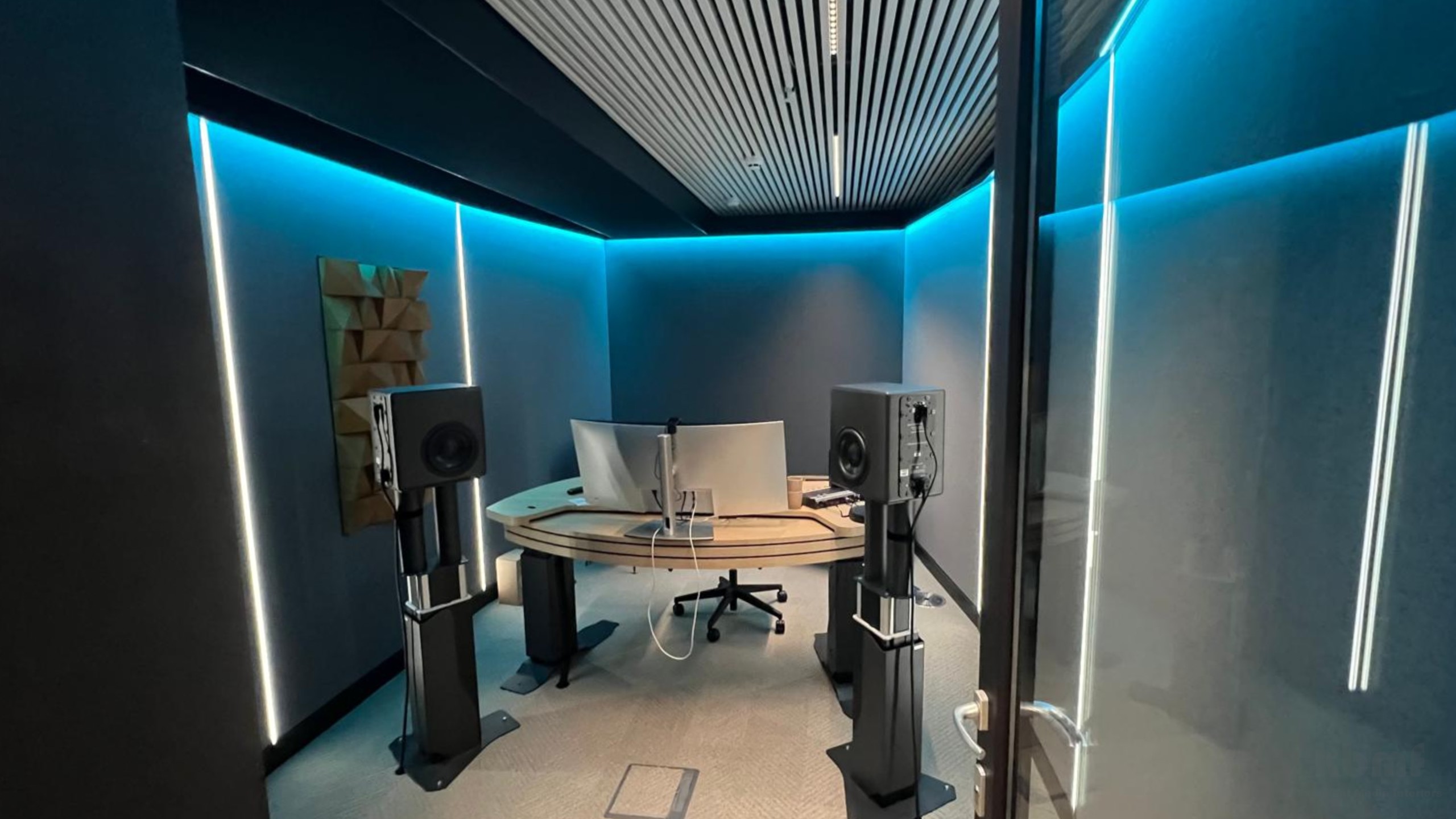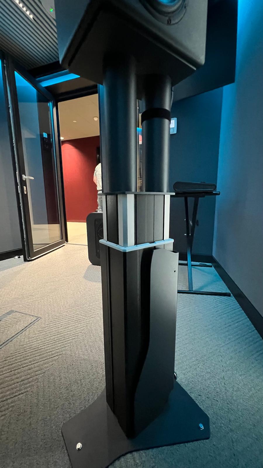 De desks zijn uitgerust met LINAK hefkolommen voor nauwkeurige hoogteverstelling, waarmee de vormgevers kunnen schakelen tussen zit- en stawerk. De hefkolommen zijn akoestisch gedempt, om dit desk akoestisch dood te maken. Tevens staan de audiomonitoren ontkoppelt van de desks en staan op aparte hefkolommen. Deze kolommen zijn ook in hoogte verstelbaar met vaste offset zodat afluisterhoogte correct blijft.