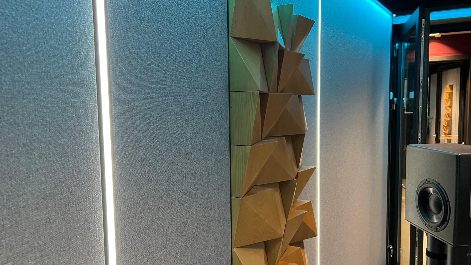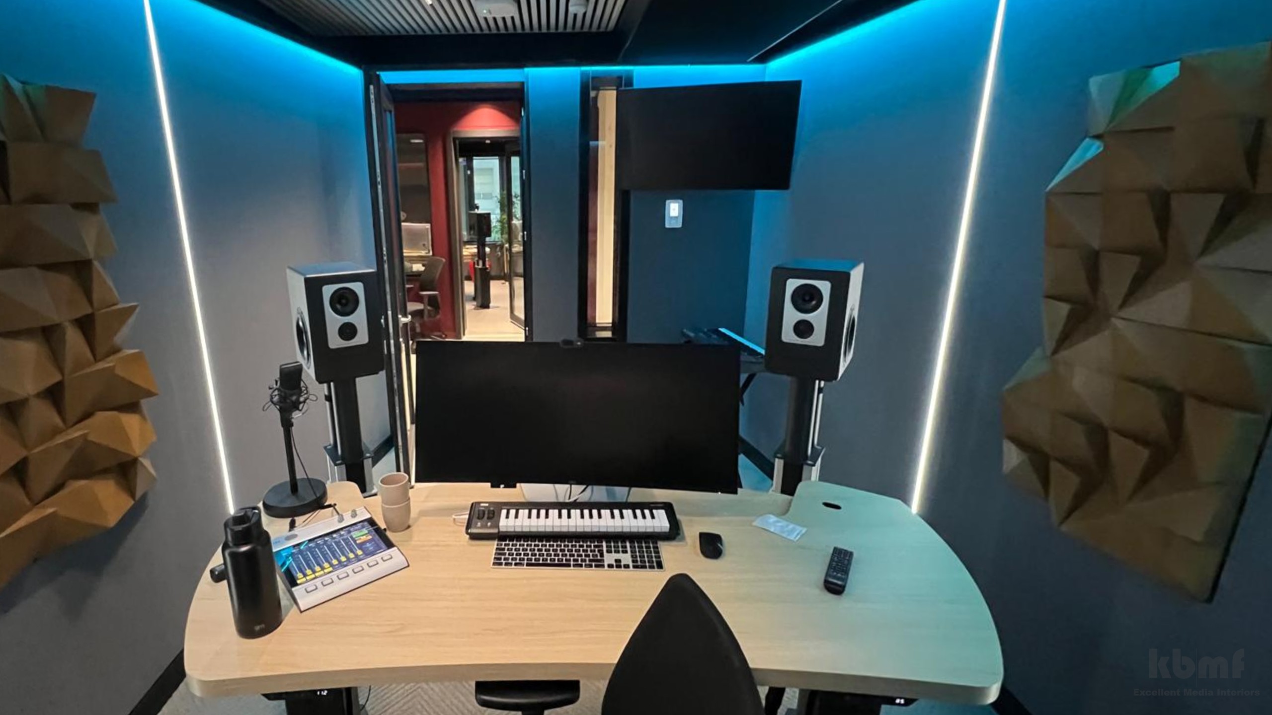 Voor de vormgevers van Qmusic en JOE realiseerde kbImf vier op maat gemaakte desks, verdeeld over meerdere ruimtes. De meubels combineren akoestisch bewust ontwerp met functionele flexibiliteit en een stijl die past binnen de bestaande studio omgeving